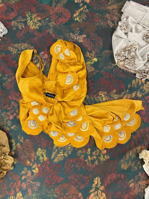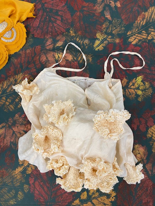 Before the Rupture, humans understood mycoremediation (fungi’s ability to break down oil and plastic) but it never occurred to them to thank the beings that were cleaning up some of our worst mistakes. Now, scientists and former fashionistas work for newly-discovered fungi species that have an appetite for our old synthetic clothing, creating feasting areas where these beings can thrive. We are so fortunate that they choose to feed on our appalling excesses, so it is our work to nourish them.
